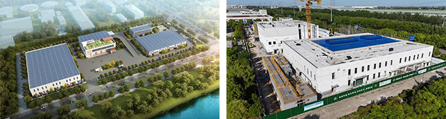 區(qū)環(huán)衛(wèi)基礎設施建設項目效果圖(左)與現(xiàn)場俯瞰圖(右)
